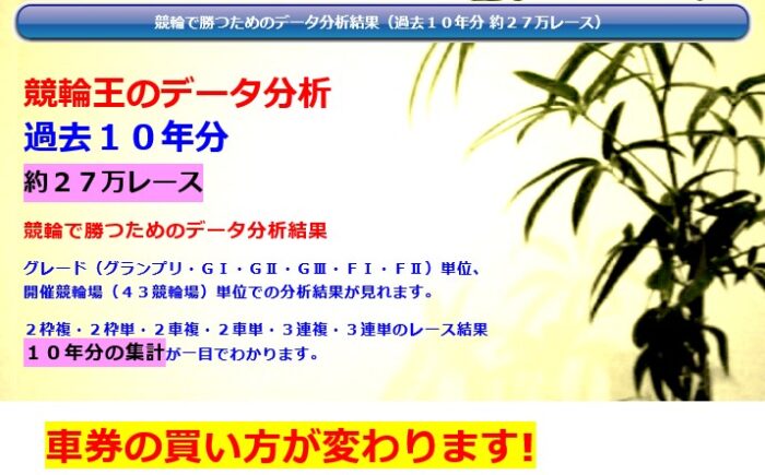 競輪王のデータ分析(過去10年分 約27万レース)商品概要 【情報登録公開日】 2016年1月2…